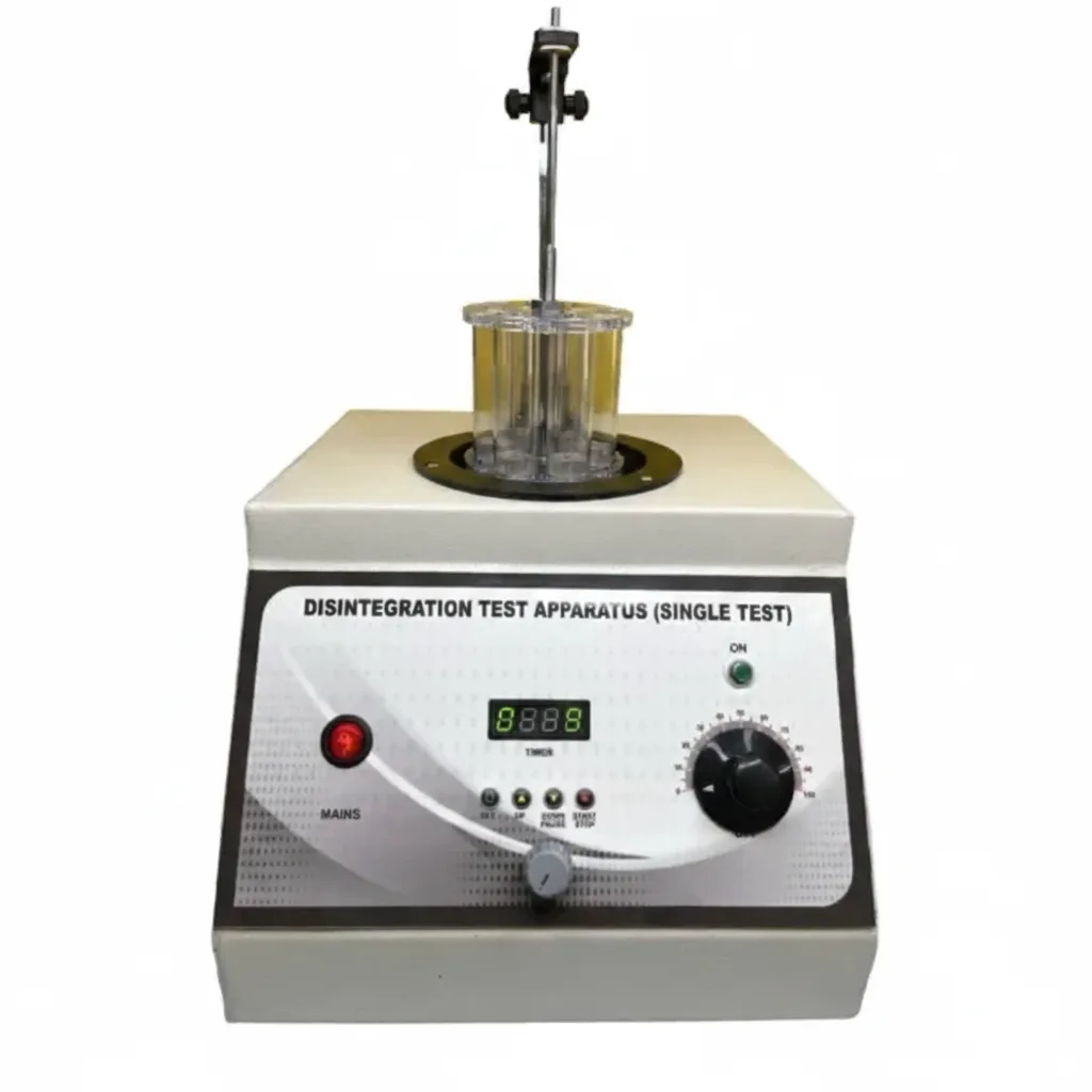 This Digital Tablet Disintegration Test Apparatus demonstrates the speed at which a tablet disintegrates into smaller particles, which increases the surface area and the drug’s availability when taken by a patient. It measures the disintegration time of tablets according to IP/USP standards. The Apparatus is designed to test six batches of tablets simultaneously, making it highly valuable for pharmaceutical industries.